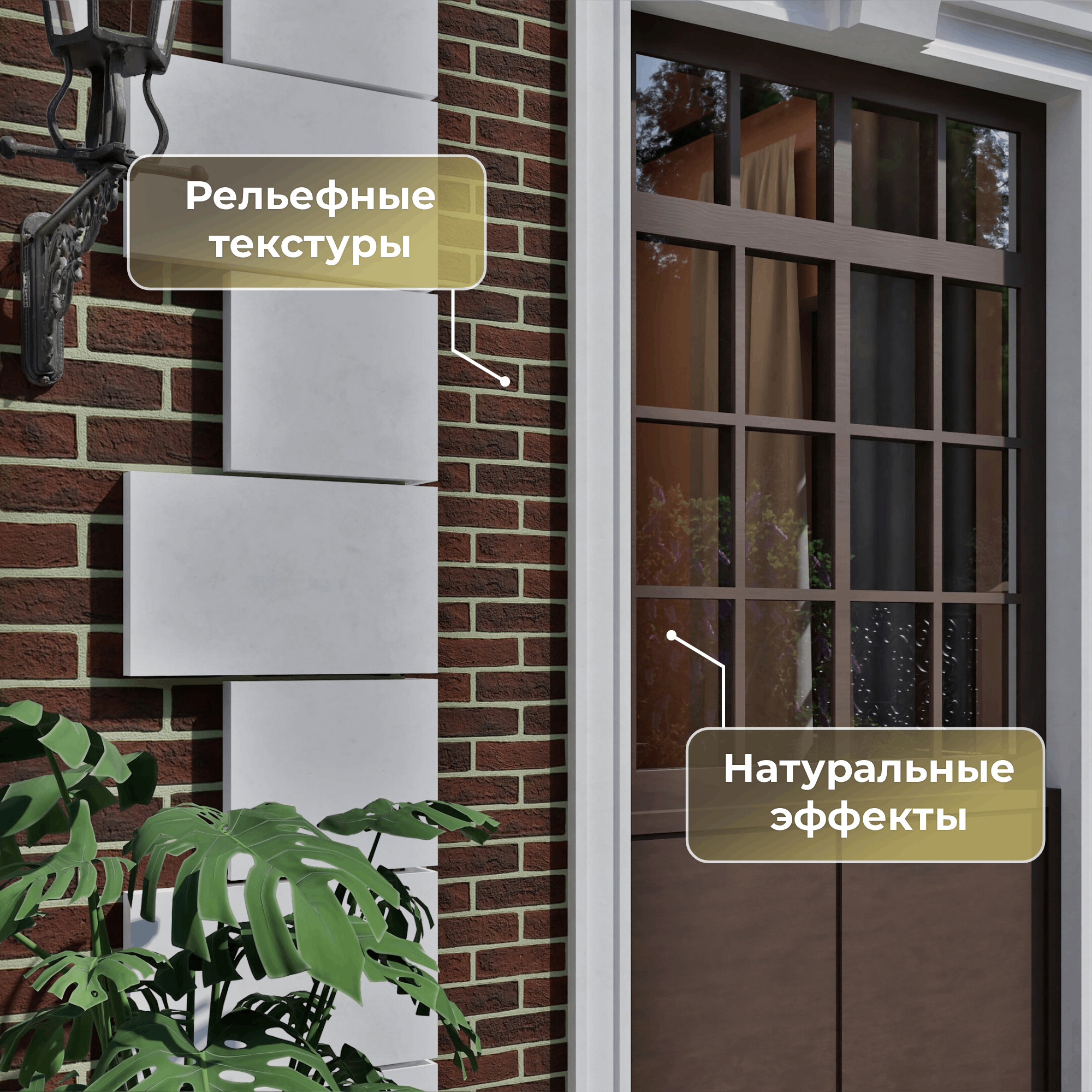 Основу конструкции составляет клинкерная плитка — высокоплотная керамика, изготовленная по технологии полусухого прессования и двойного обжига. Она монтируется на слой утеплителя из пенополистирола, формируя готовые модули для быстрой установки. Такая комбинация создает барьер против теплопотерь, одновременно обеспечивая эстетику классической кирпичной кладки.